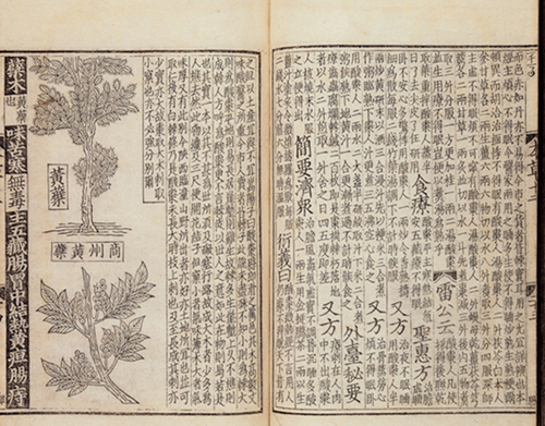 在635种药名下,附本草图933际上这是一次全幅。描绘植物的类别、形态。多数图是写实图,形象逼真、图文并茂。如草部、木部、菜部及米谷部的许多图,都可以作为鉴定植物到科属甚至到种的依据。特别是收录了前代本草著作中从来没有著录的103种药用植物,丰富了本草学内容。