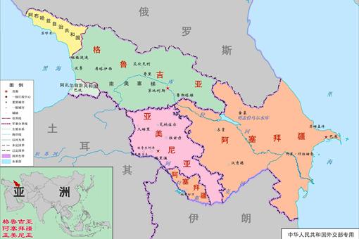 欧亚大陆的分界线,就是从土耳其海峡—黑海—高加索山脉—里海—乌拉尔山为分界线,而主轴分水岭高加索山脉为南欧与西亚的分界线,在黑海与里海之间,呈现出西北至东南方向横贯格鲁吉亚、亚美尼亚以及阿塞拜疆三个国家。北高加索地区属于俄罗斯,而外高加索则是格鲁吉亚、亚美尼亚和阿塞拜疆三国。
