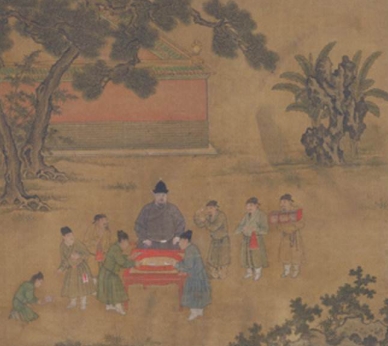 明宣宗(1425年—1435年),明朝第五位皇帝,为明仁宗朱高炽之子,明成祖朱棣之孙。生于燕王朱棣府中,“成祖梦太祖授以大圭,上携使之子孙,永世其昌,喜曰:儿英气溢面,符吾梦矣”。靖难之役后朱棣登基为帝,由于吉梦的缘故且朱瞻基与朱棣十分相像,因此朱棣十分喜爱这个孙子,对于朱瞻基的培养也是十分重视,朱棣亲自挑选大儒贤臣作为朱瞻基的老师,永乐七年(1409年),朱棣巡视北京,并让太子朱高炽及朱瞻基视察农耕情况,在此期间朱棣特地写作《务本训》赐予太子及朱瞻基,希望其施仁德,善待百姓。