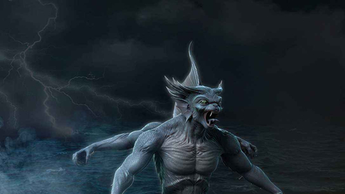 民间传说夜叉鬼,夜叉多为“海怪”或“水鬼”之类的形象,可食人畜,且与龙王有关,在印度一些宗教神话中,有夜叉神(冥神、阴神、凶神、邪神),阴间独有的鬼怪生物,是阴间的鬼差,全身皆黑,有些画里的夜叉的头部如驼峰状,无发,手持铁叉,面目狰狞恐怖。