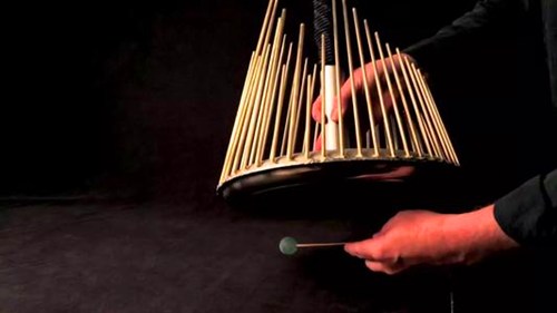 Waterphone是一种独特的无调音响乐器,主要包括不锈钢谐振器“碗”与一个圆柱形“脖子”,包含小量的水和数十根长短不一的黄铜标尺。它发出的声音比较虚无缥缈,多是震荡的金属声,视演奏者的演奏手法和轻重,能发出各种让人毛骨悚然的声音。