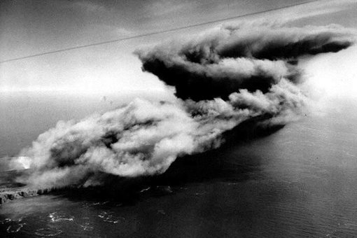 1947年4月18日,英国皇家海军引爆了6700吨炸药,制造出巨大黑色蘑菇云,蘑菇云向天空蔓延了6,000英尺。吉尼斯世界纪录大全将黑尔戈兰岛爆炸列为历史世界上最大的单个非核爆炸。爆炸所释放的能量相当于广岛原子弹所释放能量的三分之一,震撼了整个主岛直至其底部几英里。英国人最初预计该岛将被完全摧毁,但是该岛幸存下来,不幸的是它的物理形状被永远改变了。它的南端陷入了一个巨大的火山口。