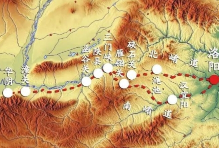 而秦朝时的函谷关位于河南灵宝北部,距三门峡市大概75公里,沿着秦朝的函谷关往东走,有南北两条崤道可以到洛阳。