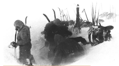 这些年轻人穿着睡觉时的衣服,急速沿着积雪的山坡向下,朝一片浓密的森林跑去,可是在零下30摄氏度左右的刺骨严寒中,跑到森林也毫无生存希望。