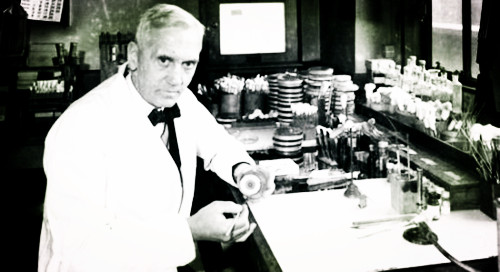 亚历山大·弗莱明于1923年发现溶菌酶,1928年首先发现了青霉素。后英国病理学家弗劳雷、德国生物化学家钱恩进一步研究改进,并成功的用于医治人的疾病,三人共获诺贝尔生理或医学奖。青霉素的发现,使人类找到了一种具有强大杀菌作用的药物,结束了传染病几乎无法治疗的时代;从此出现了寻找抗菌素新药的高潮,人类进入了合成新药的新时代。