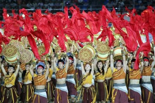 第一列阵为鼓阵,每方置108面铜鼓,每鼓饰以云雷纹;第二列阵为锣阵;第三列阵为旗阵;第四列阵为僧尼;第五列阵为族老;第六列阵为歌舞手;第七列阵为远方来宾;第八列阵为本地宾客;第九列阵便为游人及观众。官员、贵宾及司祭人员在正面就座。