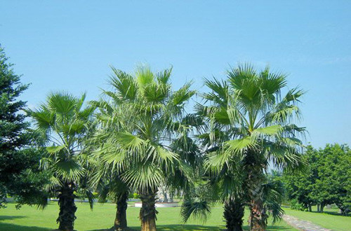 华盛顿葵是美丽的风景树,干枯的叶子下垂覆盖于茎干似裙子,有人称之为“穿裙子树”,奇特有趣;叶裂片间具有白色纤维丝,似老翁的白发,又名“老人葵”。宜栽植于庭园观赏,也可作行道树。 这是棕榈科植物中较耐寒的种类之一,可耐-6℃的低温,抗风抗旱力均很强,生长迅速,树干直而挺拔,基部显著膨大,,粗壮而呈红褐色的树干格外引人注目。