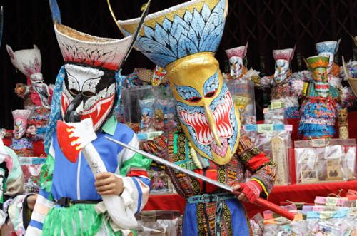 泰国鬼节不但没半点惊悚,反而洋溢着一份欢乐和热闹。游行途中,“众鬼”不但会向围观的途人扮“鬼脸”,还狂歌热舞一番,期间的歌曲甚至以摇滚音乐为主,有时更有乐队现场伴奏。更有意思的是,众“鬼”在游行途中有时还会手持木制假阳具,因为当地人视假阳具为土地肥沃、产量丰富的象征,寓意来年丰收富足。