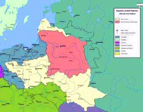 在第一次瓜分波兰中,波兰立陶宛联邦丧失了211000平方千米的土地(占其领土的30%,此前联邦领土面积为733000平方千米),与至少四至五百万的人口(约占总人口的三分之一,此前总人口为1400万)。