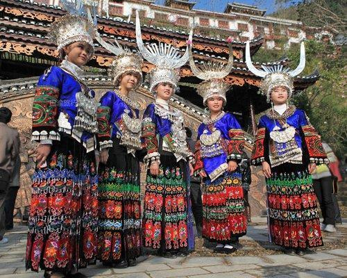 苗族妇女的服装有百多种样式,堪称中国民族服装之最。较有代表性的传统“盛装”,仅插在发髻上的头饰就有几十种。