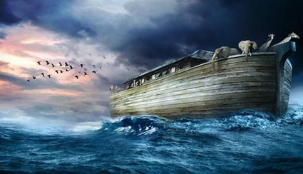 2月17日那天,诺亚60岁生辰,海洋的泉源都裂开了,巨大的水柱从地下喷射而出;天上的窗户都敞开了,大雨日夜不停,降了整整40天。水无处可流,迅速地上涨,比最高的山巅都要高出15尺。凡是在旱地上靠肺呼吸的动物都死了,只留下方舟里人和动物的种子安然无恙。方舟载着上帝的厚望漂泊在无边无际的汪洋上。