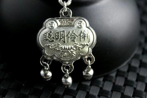 李时珍《本草纲目》中记载:“银有安五脏、安心神、止惊悸、除邪气等作用”。可见佩戴银质的长命锁,对身体的调养作用是确实存在的。贫穷人家会用铜钱、布、丝线来制作,也有求个好兆头的意义在里面。