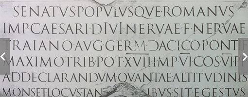 图6 拉丁铭文中图拉真的全部名号(皇帝·凯撒·神圣的涅尔瓦之子·涅尔瓦·图拉真·奥古斯都·日耳曼征服者·达西亚征服者·大祭司长·保民官·执政官)