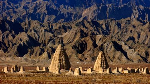 西夏王陵位于宁夏回族自治区银川市西部30公里的贺兰山东麓,陵区北起泉齐沟,南至银巴公路,南北长约10公里;东临西干渠,西靠贺兰山,东西宽约5公里,总占地面积约为50平方公里。陵区位于贺兰山中段南段东侧,为山前洪积扇地带,海拔1150-1220米。地表遍布砾石和粗砂,地基承重力大,保水性差,自然排水条件好。