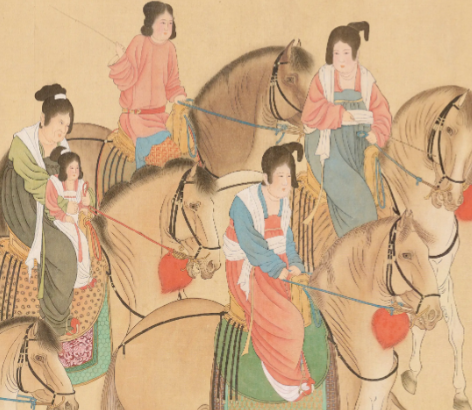 在民间,女性骑马出行、参与社交活动等现象也十分常见。张萱的《虢国夫人游春图》生动地描绘了虢国夫人等贵族女性骑马春游的场景,画面中女性们神态悠然,尽显自信与洒脱。这表明在当时的社会环境下,女性抛头露面、参与公共活动是被广泛接受的,女扮男装出行自然也不会受到过多的限制和指责。