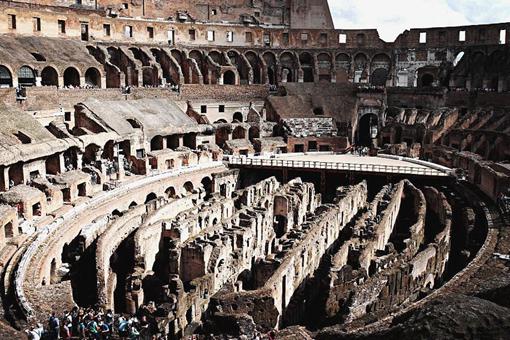 沿着威尼斯广场往前走就是帝国大道,一直通向罗马斗兽场,途中还会看到古罗马城遗址。从课本上了解到,罗马帝国覆盖了28万平方米的土地,其中包括数个城市、小镇,数条河流,多座山,多个大剧场,许多导水管、排水沟、拱门、博物馆、镀金大教堂以及比萨小屋。