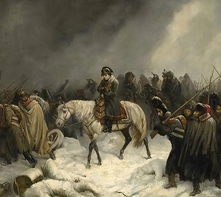 但此时,俄罗斯的寒冬已经悄然降临。11 月初,天气突然变冷,第一场暴风雪席卷而来。厚厚的积雪覆盖了大地,道路变得泥泞不堪,法军的行军速度急剧下降。士兵们穿着单薄的军装,在寒风中瑟瑟发抖,许多人的手脚被冻伤,失去了行动能力。马匹也因为缺乏饲料和寒冷的气候而大量死亡,这使得法军的运输和机动能力受到了极大的影响。
