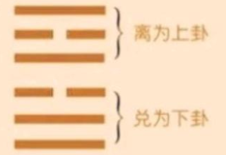 离所代表的火是向上的,而兑代表的沼泽是向下了。一上一下的两个反方向,意思就是心意不一了。