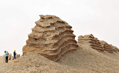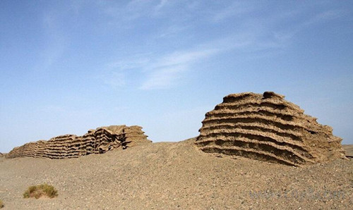 敦煌由于得天独厚的自然条件,现存的“积薪”数量之多、保存之完好为全国之最。有一座烽隧周围存放的积薪多达十五堆,排列十分整齐,天长日久,凝结在一起,坚如化石。