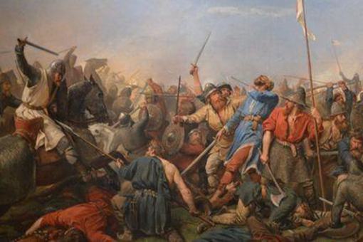 就在这时,一支从对面射过来的冷箭击中了哈罗德,不幸贯穿了他的咽喉。那个时代最伟大的武士、一生经历极为传奇的哈罗德就此毙命。他的阵亡让整支队伍失去了灵魂人物,原先就已经无法支撑下去的阵线开始崩溃,四散溃逃的士兵已经无心再战,惨遭英格兰士兵的四处追杀。决定英国命运的斯坦福德桥之战,在1066年9月25日下午画上句点,一切都尘埃落定。
