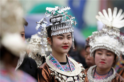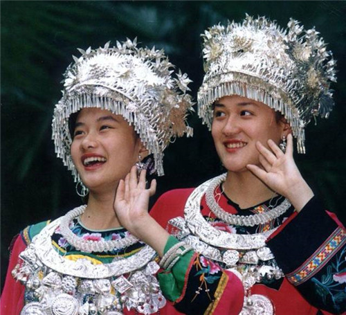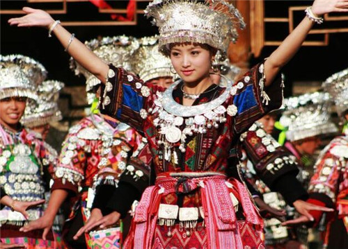 此外,苗族人在不同的节日还会穿着相应的服装,佩戴特殊的银头饰,这时的银头饰不仅仅代表着人们的审美观,它还是一个民族文化、习俗的要求和精神寄托,如银帽、银冠、插有银扇的银角都是苗族女性重要的头饰,是苗族姑娘在出嫁和节日盛装打扮时才使用。